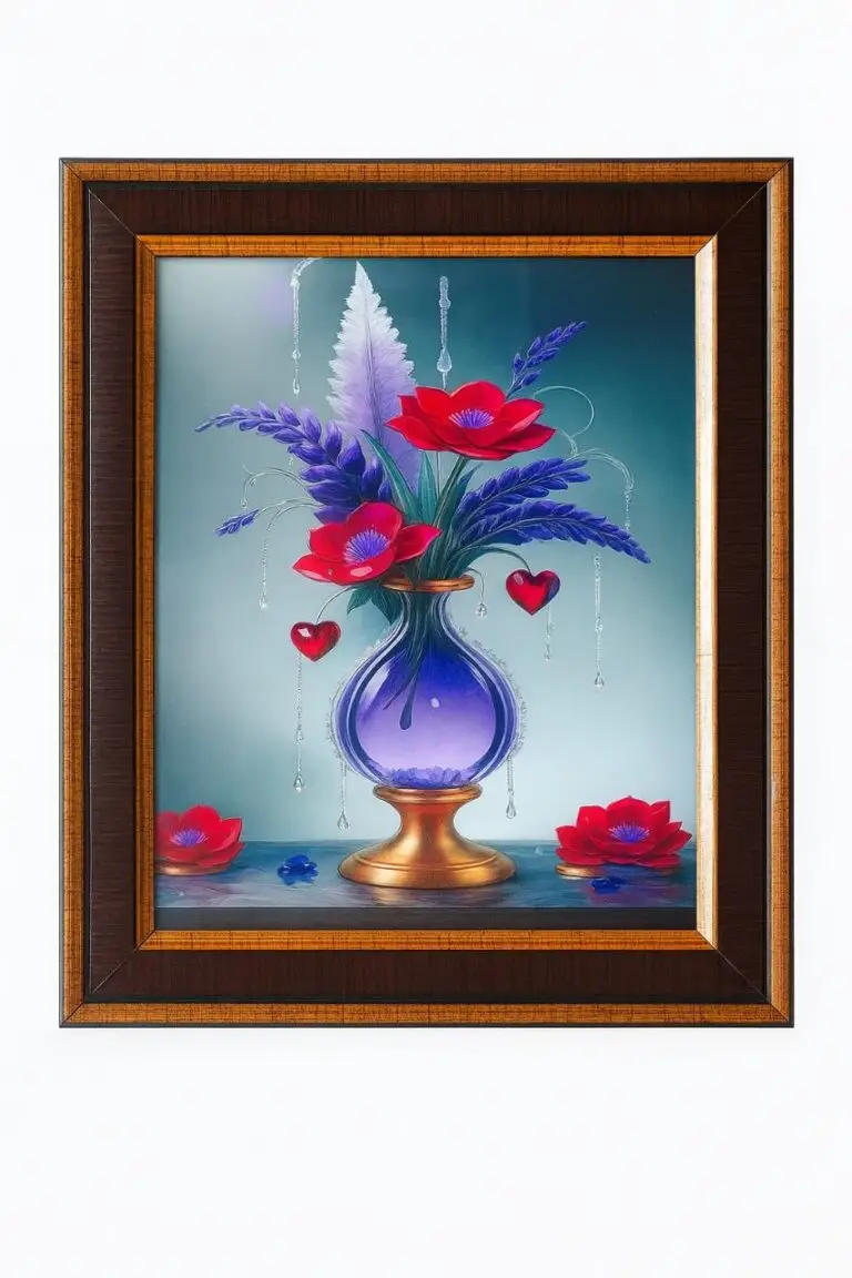 Modern Framed Wall Art – Colorful Vase and Floral Still Life Print for Home