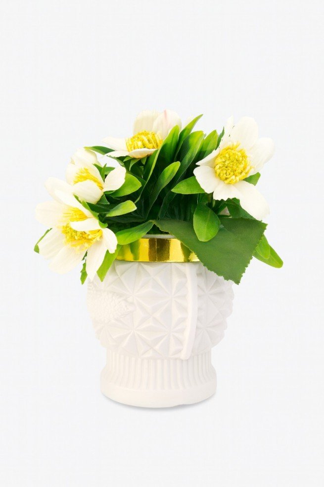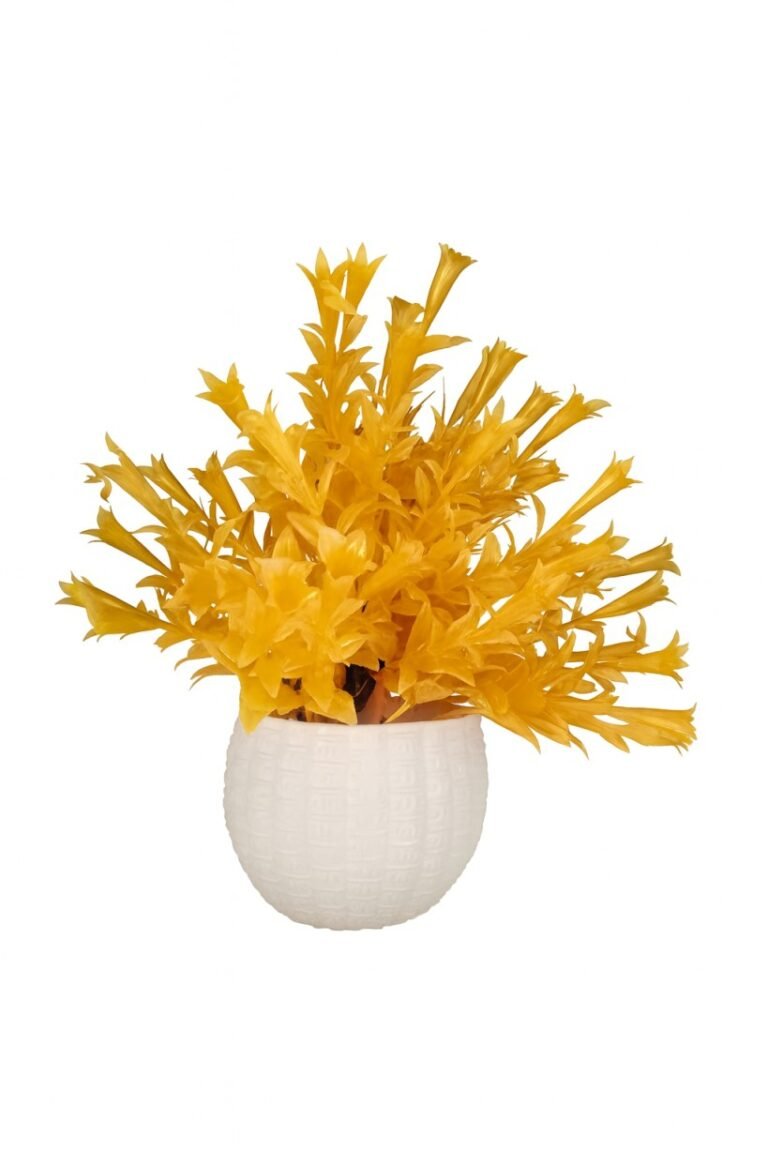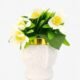 Decorative Faux Plant with Yellow Flowers in a Floral-Embossed Pot