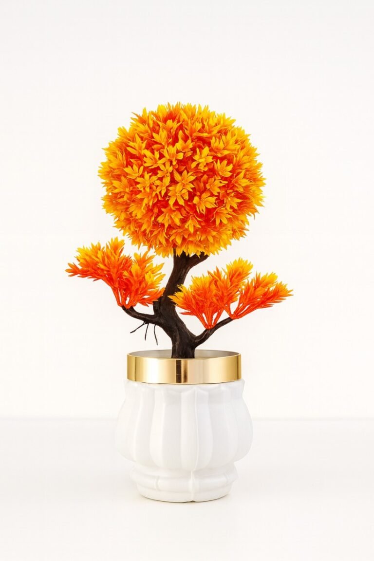 Vibrant Orange & Yellow Artificial Plant with White Pot for Home Decor