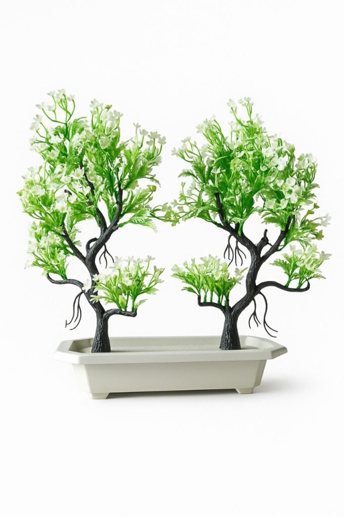 Artificial Bonsai Tree with White Flowers – Decorative Potted Plant for Home